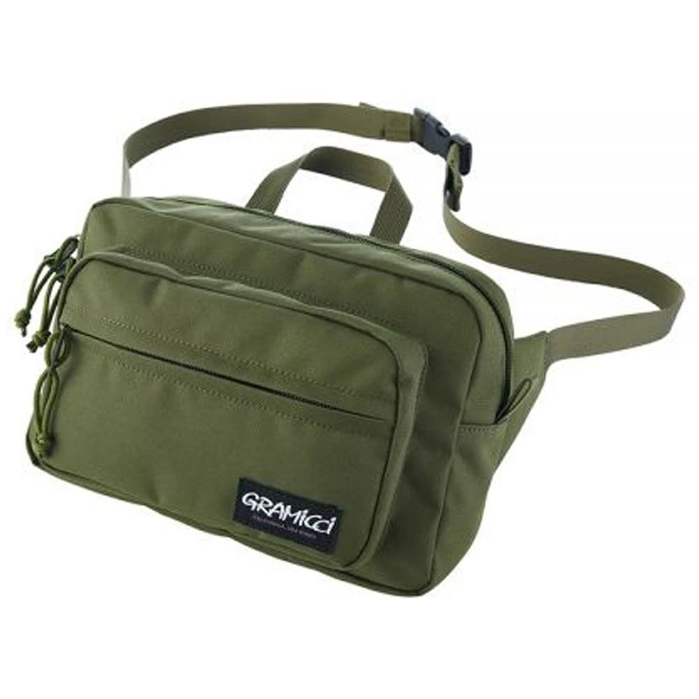 The Gramicci Hiker bag is made of Cordura® fabric, a lightweight material with high resistance to tear, friction, and abrasion. The bag has two compartments, one main and one sub compartment, with two partition pockets in the main compartment. It therefore offers ample storage capacity.