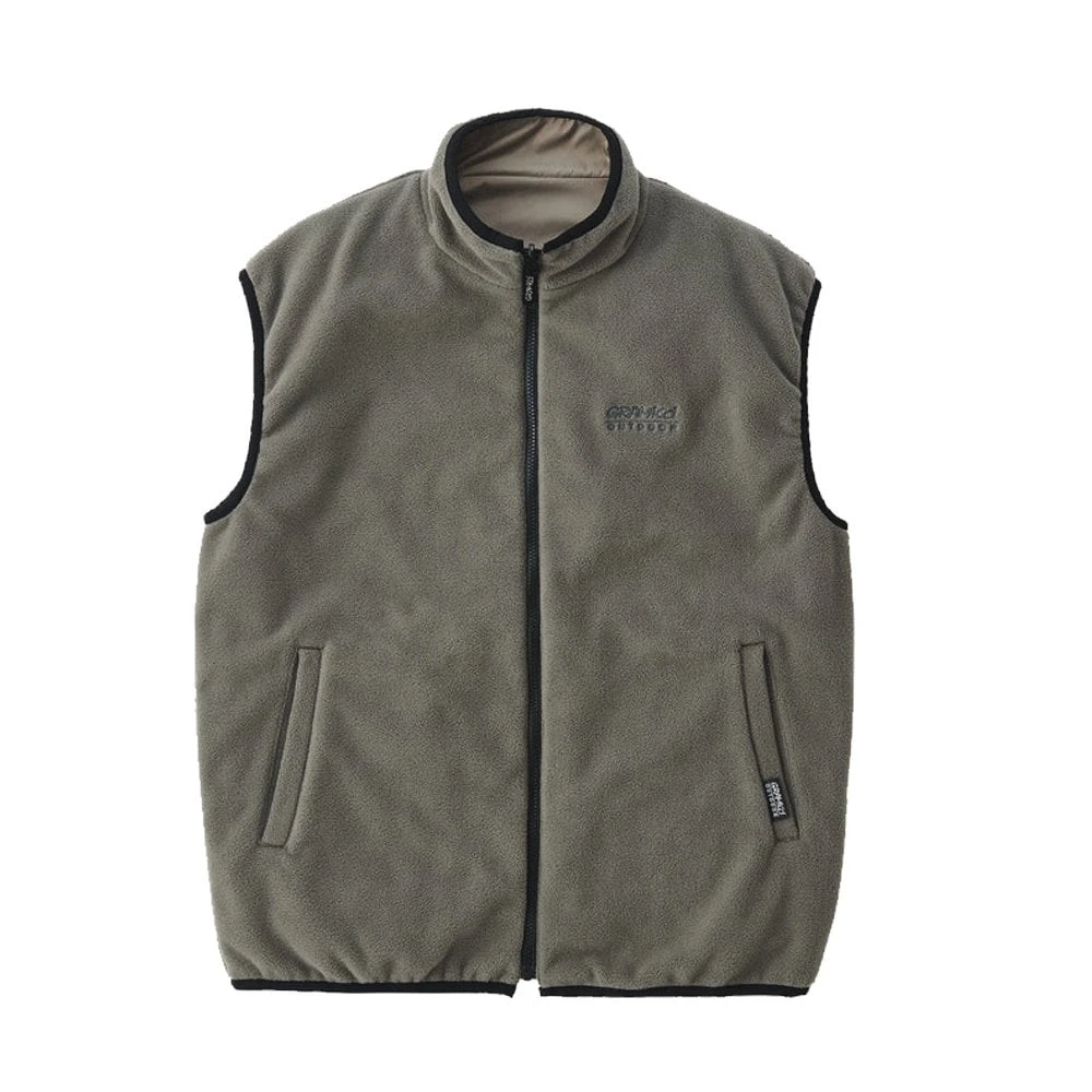 This reversible Vest from Gramicci is a relaxed fit with a roomy silhouette, constructed from polyester and fleece material and features a front zip closure with two side pockets. The vest features an all over long haired checkered pattern one side with a micro ripstop style on the alternate.