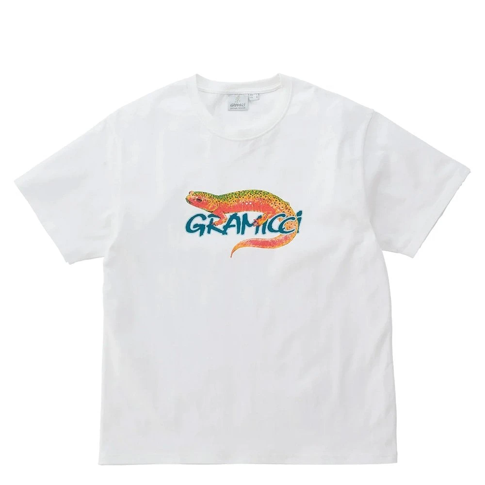 This T-shirt is made of comfortable, dry-touch organic cotton and features a pop-art graphic of a salamander.