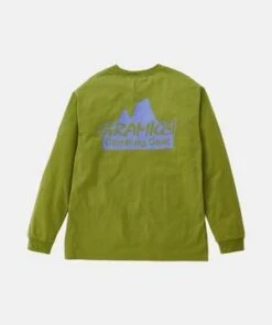 The Climbing Gear L/S Tee is made of dry-touch organic cotton that is soft and comfortable for outdoor activities or everyday wear. This long-sleeved t-shirt features a print of the silhouette of a mountain with the words “Climbing Gear” and the Gramicci logo.