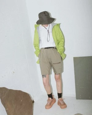 Climbing shorts that are based on the G-Shorts that are representative of Gramicci. These climbing performance shorts feature minimal, yet hybrid details. Great for activewear, as the material boasts comfort and allows movement. A high-performance material that has both high stretchability and comfort as a result of its cross section structure that sticks two types of polymers with different properties together. Although it is made with 100% nylon, it snaps back excellently after it is stretched, making these shorts a great outdoor clothing choice. It is also an eco-friendly material, as a portion of the raw nylon materials is plant-based.