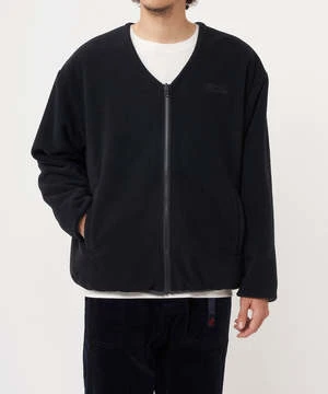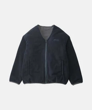 The Reversible Fleece Cardigan combines a wrinkle-resistant, durable, and water-repellent nylon side with a puffy, extra-long-fleece side. This reversible jacket is great for outdoor adventuring or a night out. With large armholes and a spacious silhouette, this water-repellent jacket boasts both fashion elements and functionality.